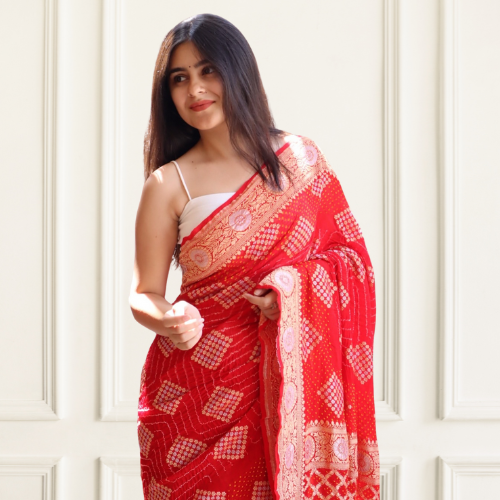 Pure Chiffon Pink Bandhej Suit with Bandhani Dupatta and Pant Set in Pure Gotta Patti Work